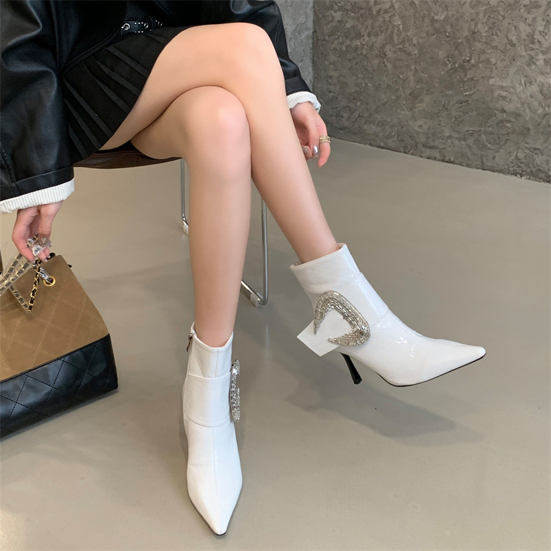 Bottines à Talons Aiguilles & Boucle Cristalline